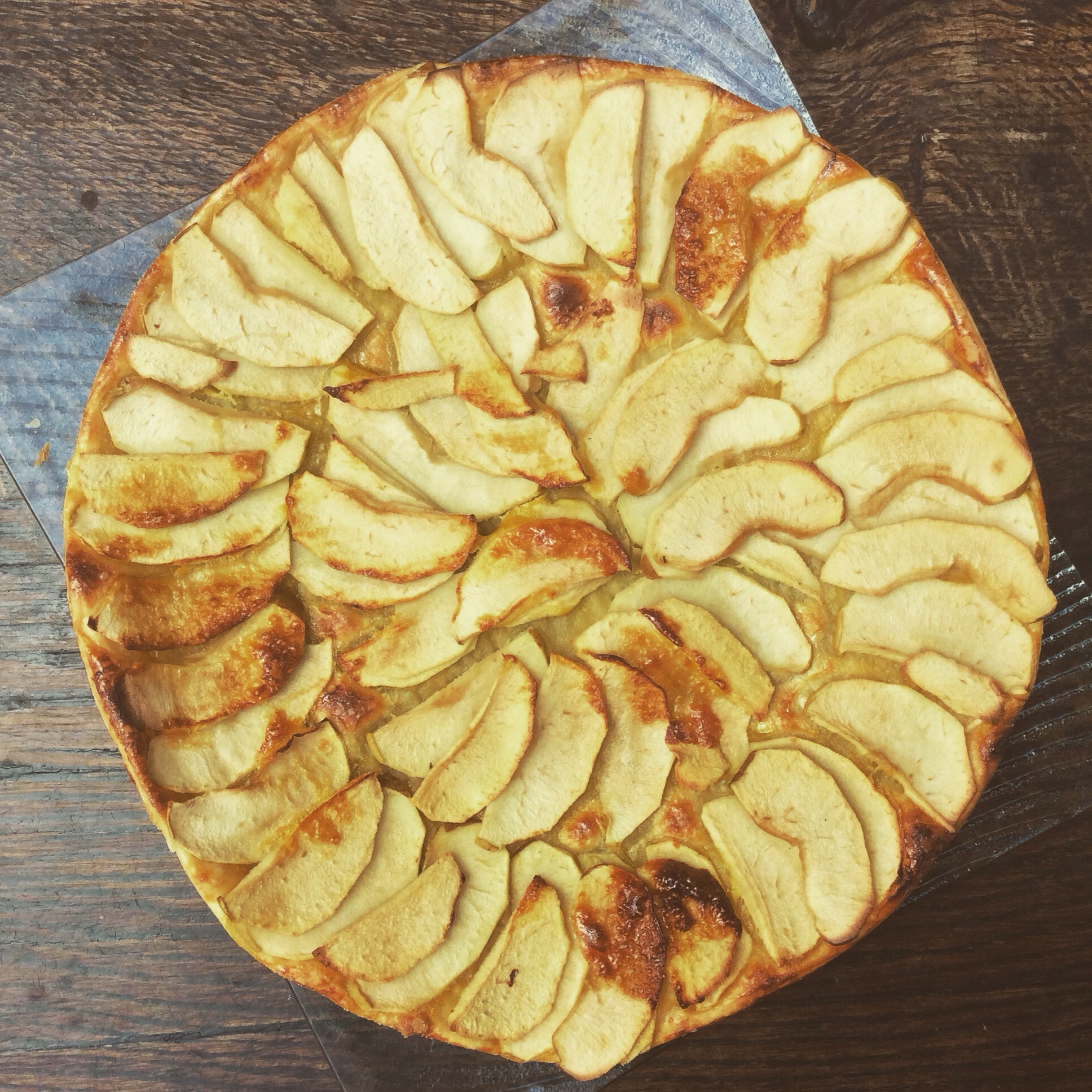 - Enfournez la une bonne trentaine de minutes. Surveillez la cuisson, si elle semble cuire trop vite, baissez le four à 180°C. Il faut que la pâte soit colorée et croustillante sur le rebord et les pommes dorées et croustillantes. Je la passe 2 minutes au grill en rajoutant un petit peu de sucre en poudre pour qu’elle caramélise bien!