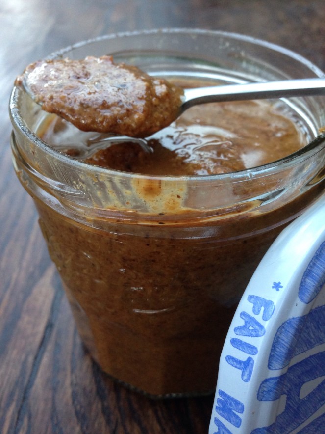 - Pour obtenir le praliné il faut continuer de mixer, l’huile contenue dans les fruits secs torréfiés va ressortir et votre poudre va alors devenir petit à petit une pâte, semi-liquide, c’est le praliné! A vous de juger de la bonne consistance, je l’aime avec encore des petits morceaux qui croquent sous la dent! Mais vous pouvez aussi la faire très lisse!