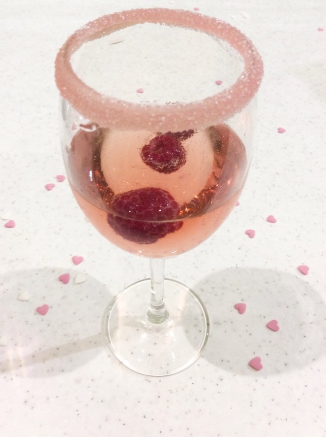 Je ne suis pas une très grande fan d’alcool, je suis même un peu difficile, et j’ai des goûts assez restreints! Mais ce cocktail j’aime beaucoup, pour ne pas dire qu’il se boit tout seul je trouve (attention tout de même à ne pas en abuser! :p). Il est composé d’un mousseux (et ça j’adore alors ça aide!), de crème de framboise, de vodka, de gingembre pressé et de framboises congelées en guise de glaçons! Bien sûr je vous donne une « recette », mais c’est à vous de l’adapter selon vos goûts! Je me suis basée sur la recette de ce blog : Make me green. Mais je n’ai pas trouvé le sirop de fleur de sureau et je vous avoues que je n’ai pas regardé la recette pour faire ce cocktail! Et bien sûr pas besoin d’être le 14 février pour boire ce cocktail hein…