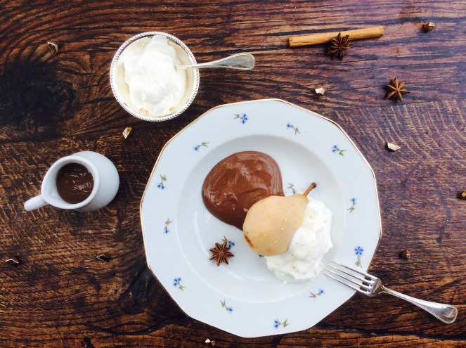 Une réflexion au sujet de « Poires pochées, ganache chocolat et chantilly »