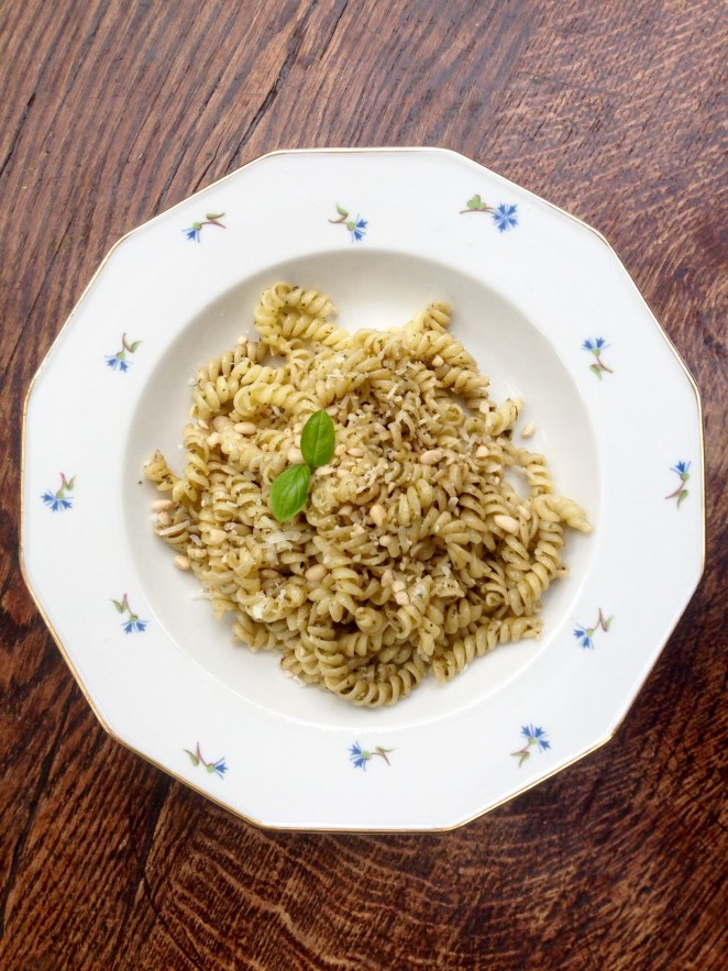 Astuces: Les fusilli ne sont pas vraiment les bonnes pâtes pour le pesto, seulement, je n’avais que celles-là! Pour la cuisson des pâtes, il vous faut goûter, elles doivent être fondantes mais résistantes sous la dent. Croyez-moi ça ne s’apprend pas comme ça la cuisson « al dente »! Je suis encore en apprentissage!
