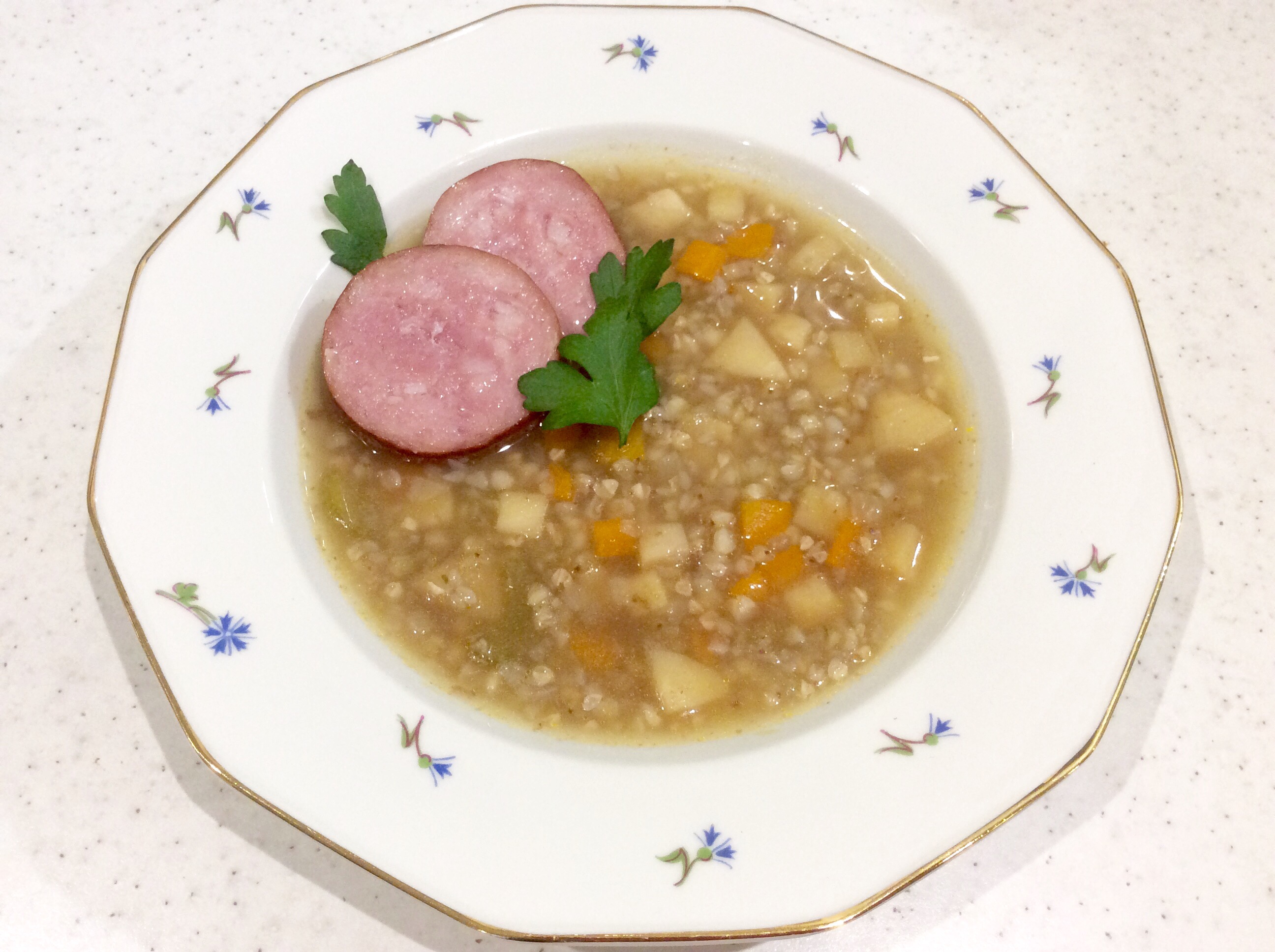 Bref, un bon bouillon, des légumes qui rappellent l’hiver (carottes, panais, céleri), des graines de sarrasin (tout nouveau pour moi) et une bonne saucisse de Morteau, le tout bien fumant devant un bon feu de cheminée et un plaid en pilou-pilou: le rêve ultime (oui, je suis heureuse avec peu de choses)!