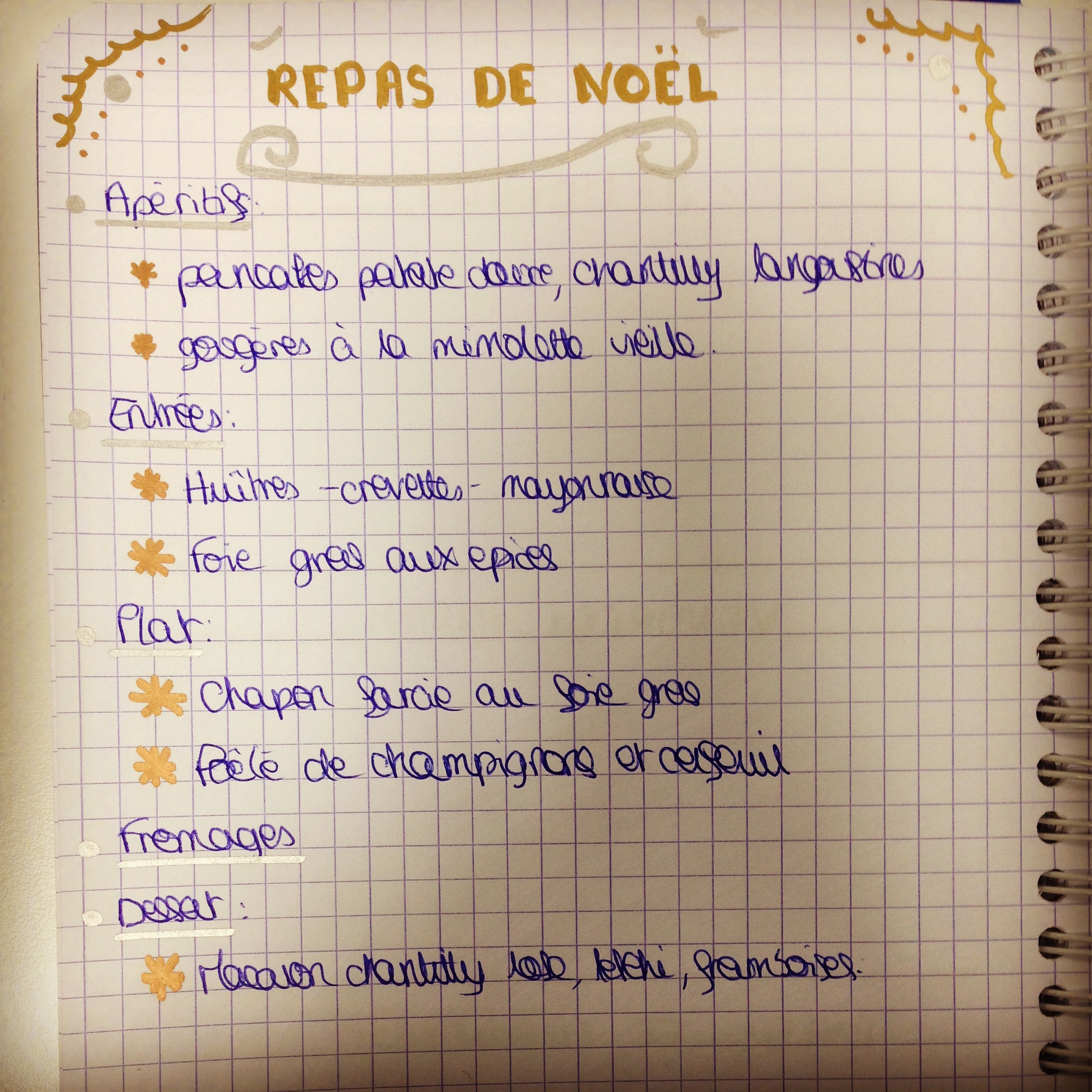 Voici le menu prévu pour Noël cette année!